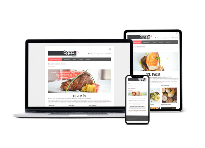 Diseño de la web del Restaurante Agape, ubicado en Bilbao. Una web presencial desarrollada a través de la plataforma WordPress que contiene los menús y una sección de contacto para reservas y consultas.